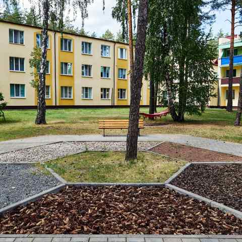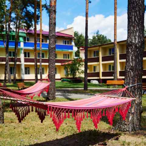Площадь санатория — 19 гектар, на которых расположились два жилых корпуса и несколько коттеджей. Номерной фонд здравницы готов предложить одноместные и двухместные номера и рассчитан на 310 гостей. Из них для родителей с детьми выделено 80 мест. В санатории действует заказное меню — это значит, что вы сами формируете свой рацион